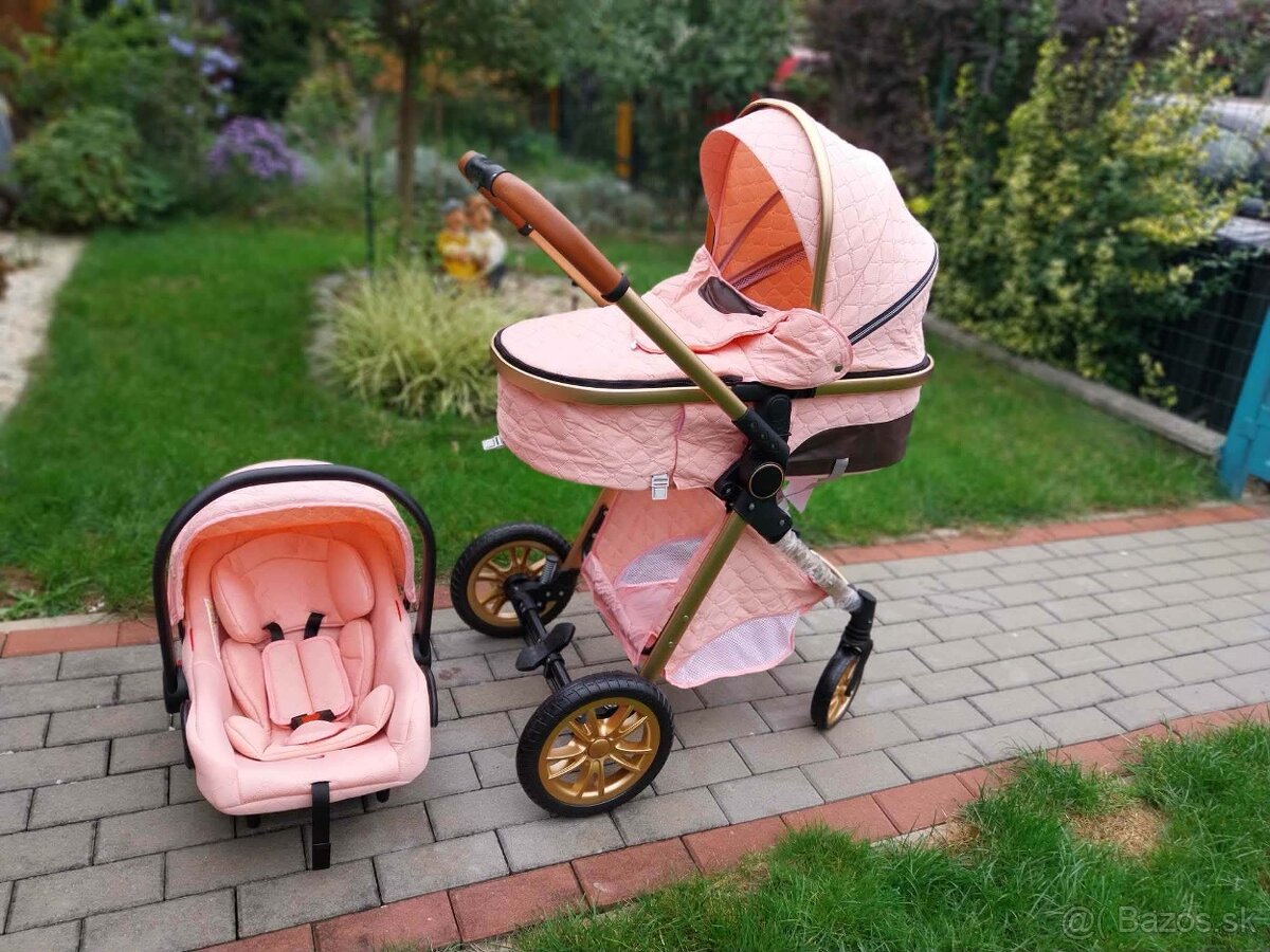 Predám kočík - 3 kombinácia, ružový, ľahko skladaťelný,