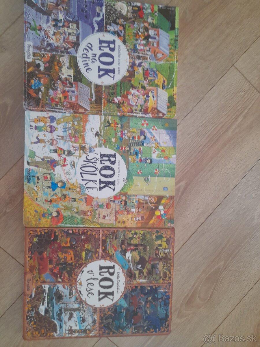 Predám knihy Rok v lese,Rok na dedine a Rok v škôlke. Každá dvojstrana predstavuje jeden mesiac v roku a podľa obrazkov dieťa spoznáva čo robia zvieratká v lese,ľudia na dedine alebo detičky v škôlke. Na začiatku knihy sa zoznámi s postavami,ktoré počas "čitania" stretne. Všetko spolu 12 eur. Osobný odber.