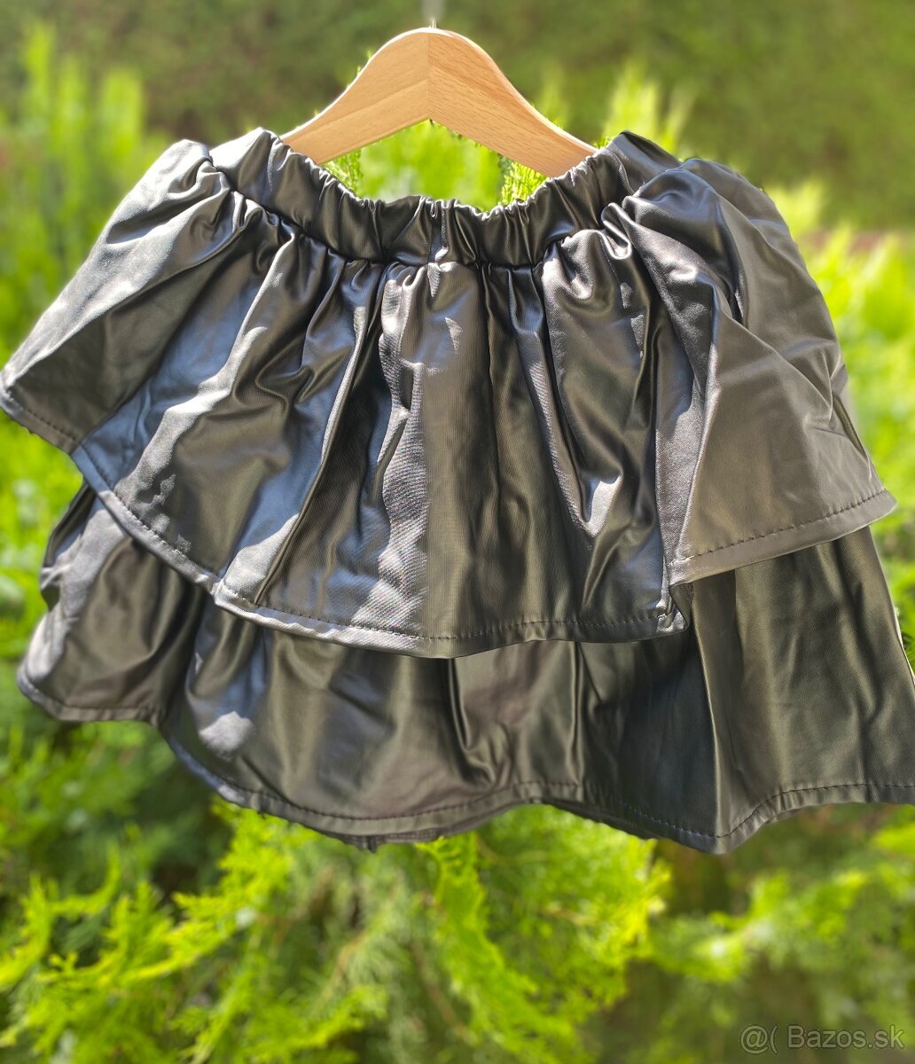 Predám detskú koženková čiernu sukňu. Oblečená bola raz na 1 vystúpenie. Sukňa je v 100 % stave. Nádherná a pohodlná sukňa. V páse gumička. Pre každú slečnu, ktorá sa rada parádi :)