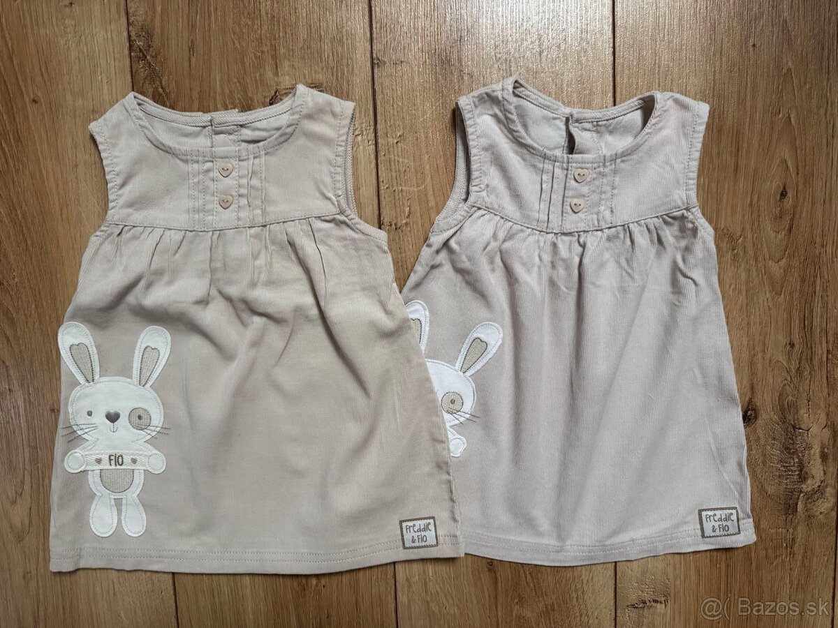 Predám šaty z tenkého menčestru pre dvojičky, veľkosť 74 (6-9 m), zn. F&F. Ako nové. Cena za oba kusy spolu.