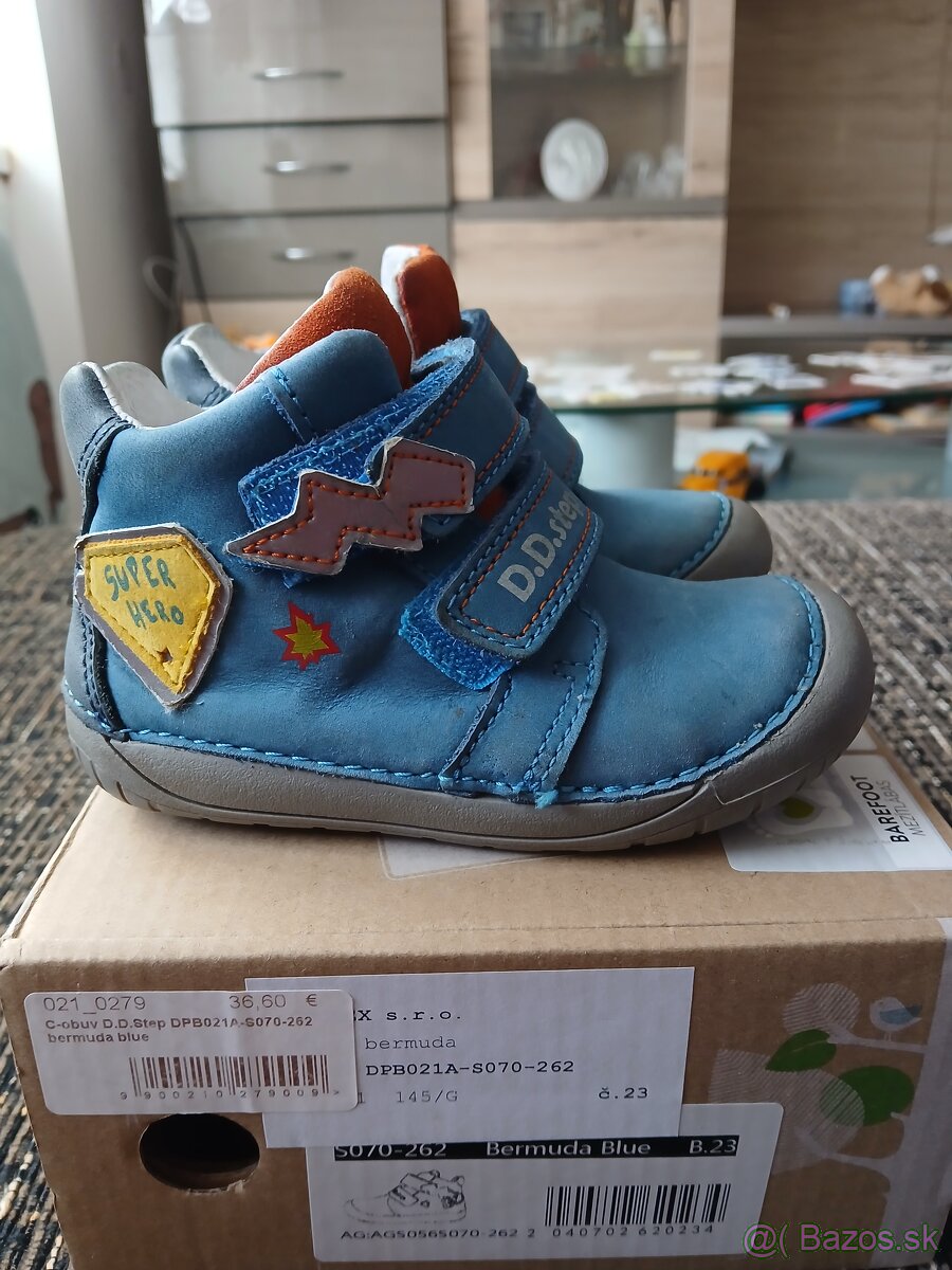 Predám celokožené barefoot prechodné topánky, v.23, sú vo výbornom stave. Vnútorná dĺžka je na fotke.