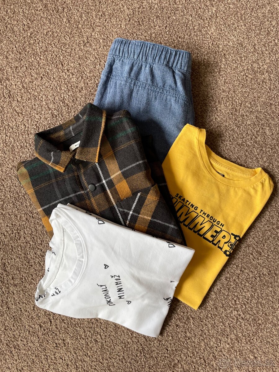 Predám pekne detské oblečenie veľkosť 140. Cena spolu za komplet, 2x tricko , nohavice a košeľa. Oblečenie je ako nové
