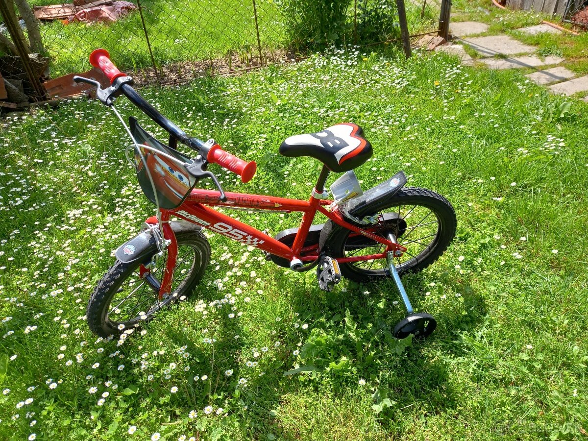 Málo jazdený detský bicykel s obľúbeným motívom Lightning McQueen.