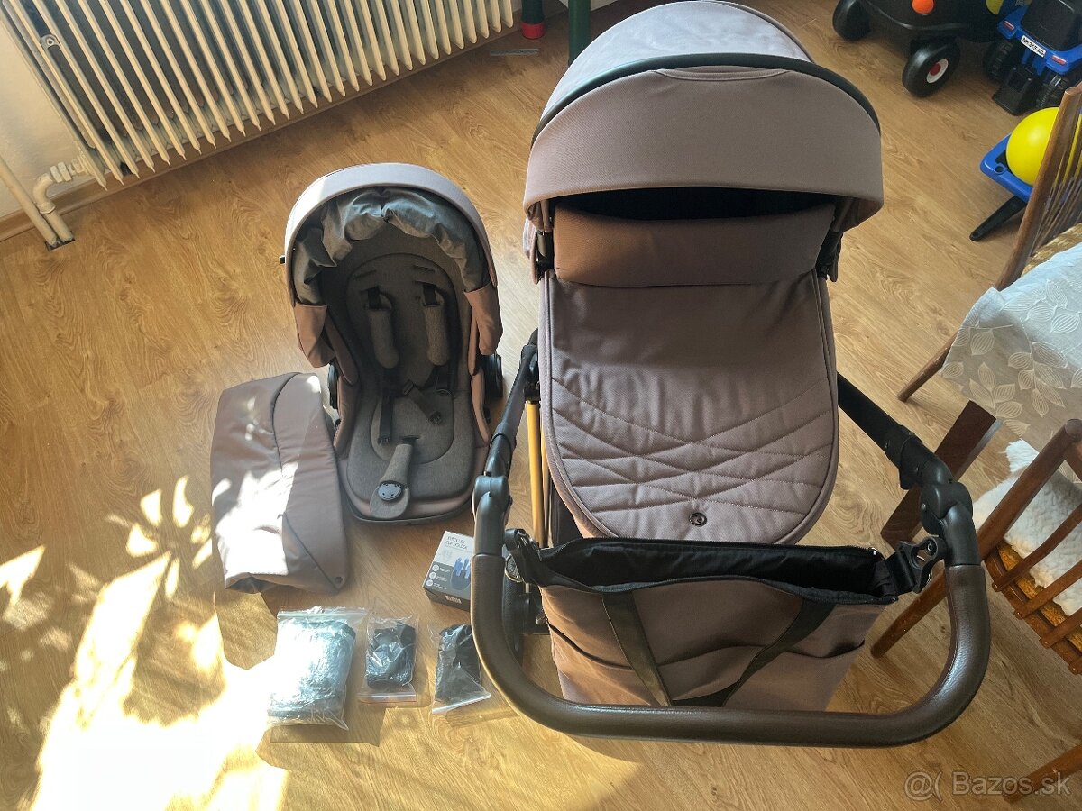 Mame k tomu zvlášť aj autosedačku a adaptéry na konštrukciu kočíka predávame buď s autosedačku alebo bez. Cena 250€ plus dohoda
