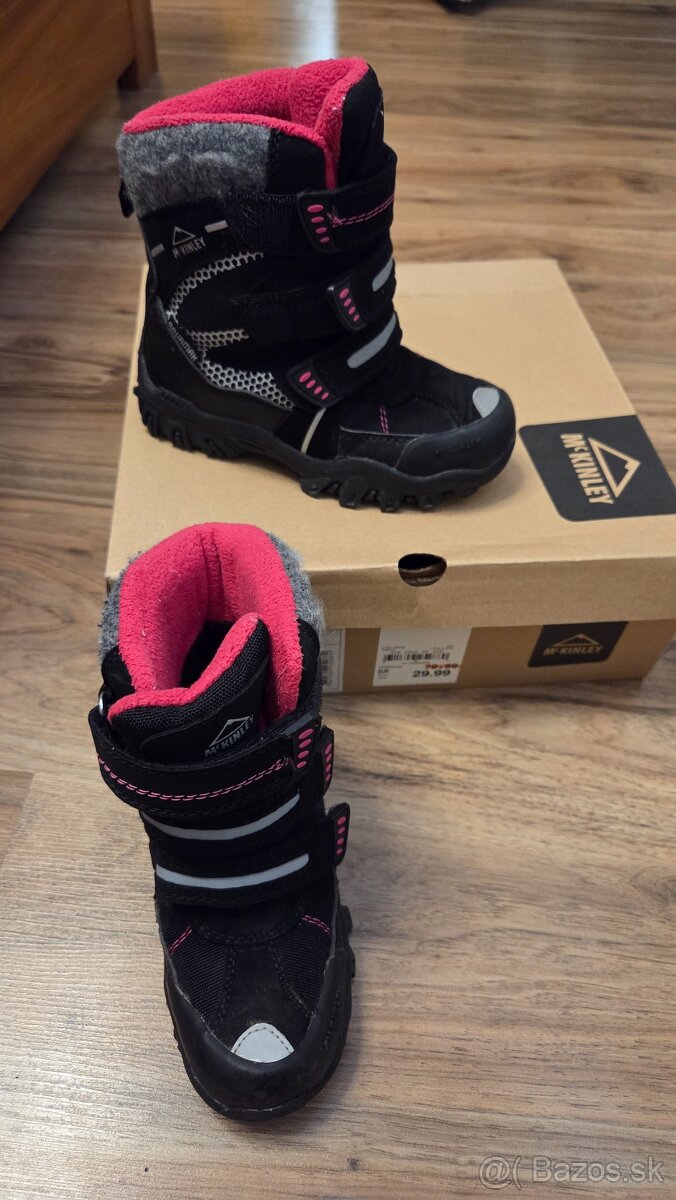 Predám teplú športovú zimnú obuv pre deti značky McKinley Drake II AQX veľkosť 28, ktorá udrží nohy v suchu vďaka membráne Aquamax. Vnútro je podšité teplým flísom, podrážka je odolná voči chladu. Vnútorná dĺžka je 18 cm.