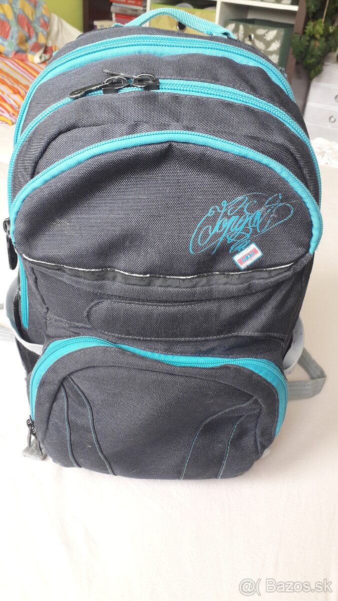 Školská taška - [11.3. 2026]Školská taška nosena 1 triedu do školy veľmi pekná, vystužený chrbát, bočné vrecko na fľašu tri priestranné vrecka