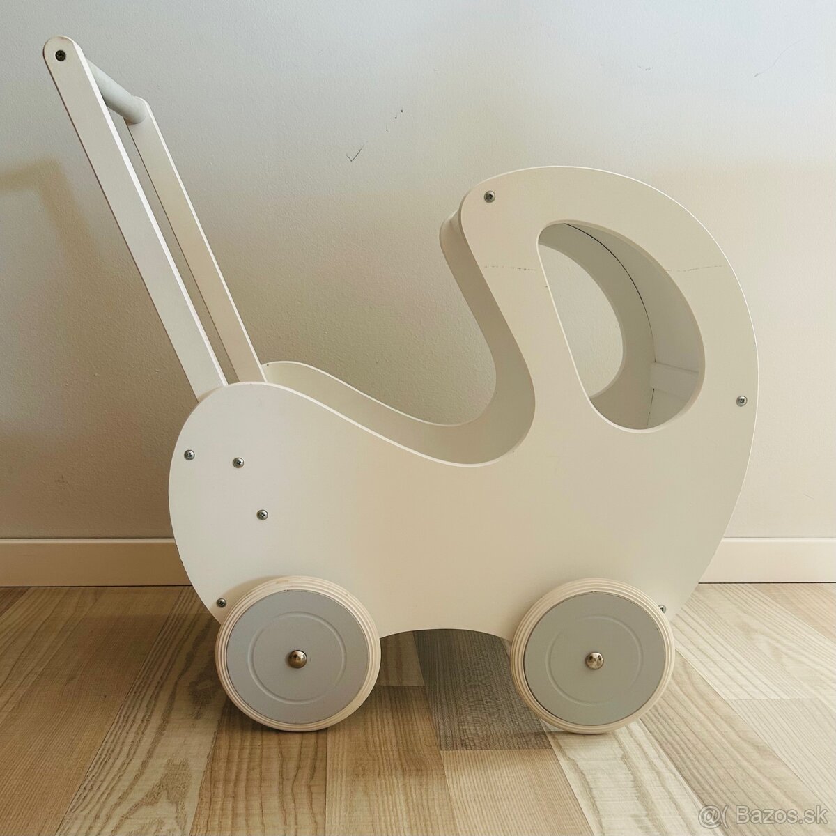Drevený kočík je veľmi stabilný, môže slúžiť aj ako chodítko pre bábätko, ktoré sa učí chodiť.