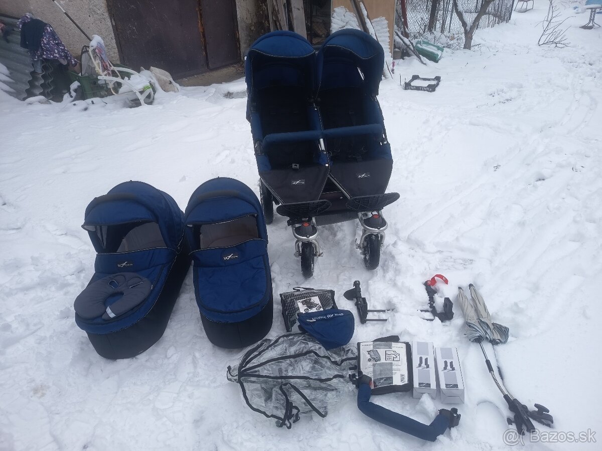 Ponukam surodenecky kocik 2 vanicky dve, sportove casty, 2x nadstavec na vajicko aj z adaptermy, 3x plastenka jedna na 2 kocik jedna na vanicku a jedna na sportovu cast, 2x madlo jedno na jednu sportovu cast a jedno na obe sportove casty, dve vrecka na odkladanie veci po boku kocika vid foto clona proti slniecku 2x dazdnik.. pridam stolicku na krmenie a 2 fusaky... Pri rychlom jednani dohoda mozna