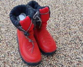 Zateplené,do snehu sú vynikajúce.Farba bordová.Veľkosť 30.