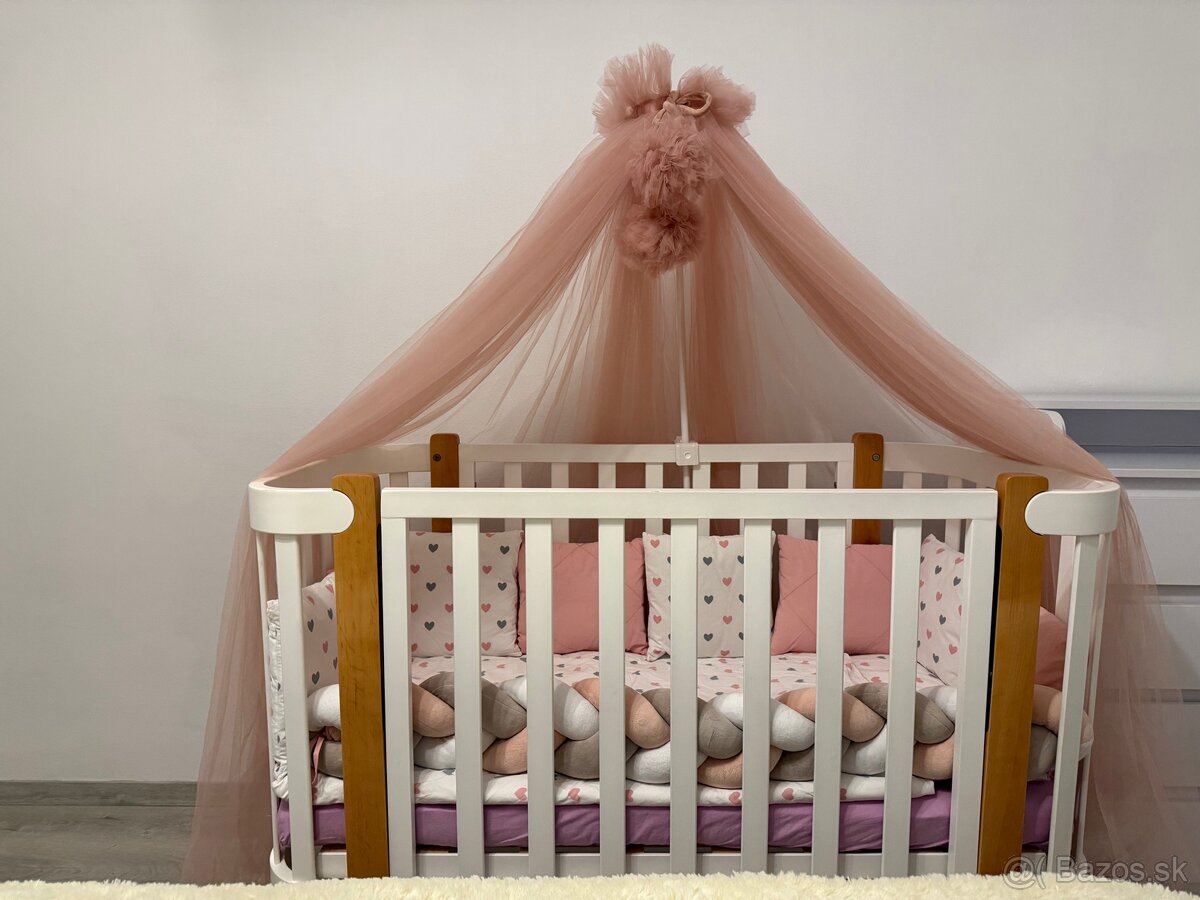 Predám detskú postieľku, ktorej súčasťou je matrac, paplón, vankúš a všetko, čo je na fotke. Pre viac informácií volajte