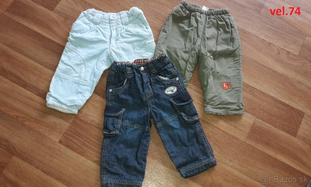 Ponukam zateplene nohavice vo velkosti 74. Ich rozmery su na fotkach. Cena je 6 EUR za 3ks. Posielam aj postou na naklady kupujuceho (na dobierku neposielam).V pripade zaujmu poprosim mail.