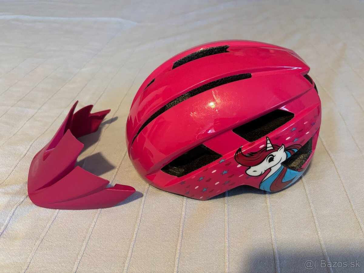 Pekný deň, predám rok používanú detskú prilbu na bicykel (dievča) s nastaviteľnou veľkosťou a proti slnečným krytom veľkosť 45-52 cm.