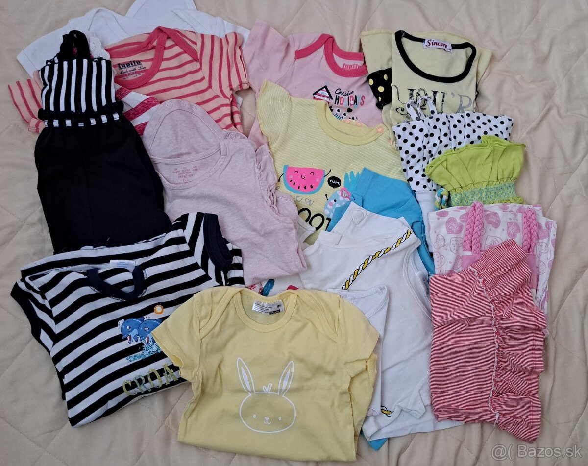 Predám balík dievčenského oblečenia veľkosť 86. Niektoré veci sú o.k, iné skôr na dvor.