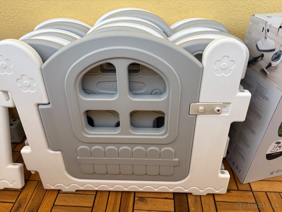 Predáme ohradku pre deti, pevný plast, možnosť prispôsobiť veľkosť ohrádky priestoru, ohrádka má 11 dielov z toho je jeden s dvierkami a jeden montessori, vyrobené v Kórei.