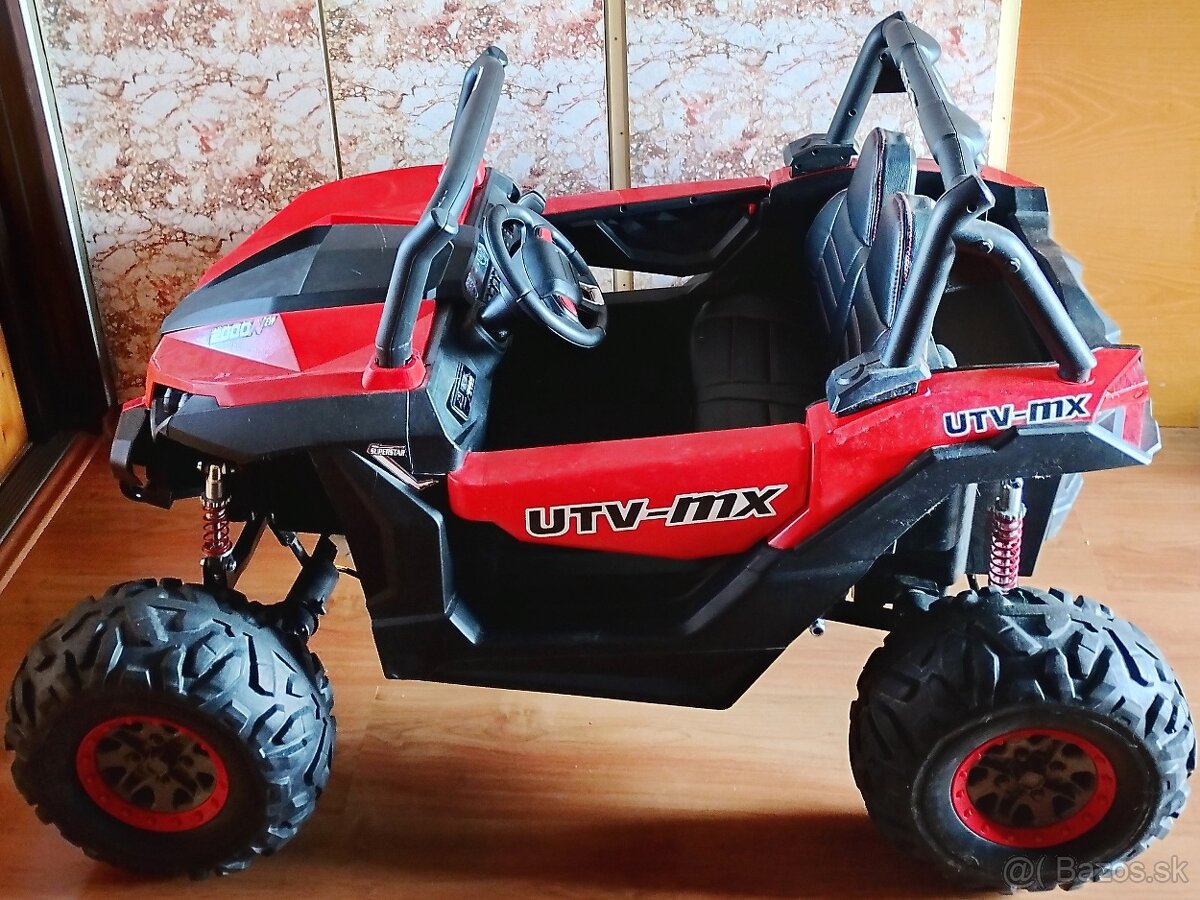 Predám toto ako nové, ale používane a zachovalé Detské elektrické autíčko(buginu)UTV-MX. Autíčko sa dá prepínať na pohon jednej alebo oboch náprav. Na foto 10 sú dané dole rámy v predu aj v zadu nakoľko autíčko je v byte a do výťahu sa inak nevmestí. Ostatné je na foto.