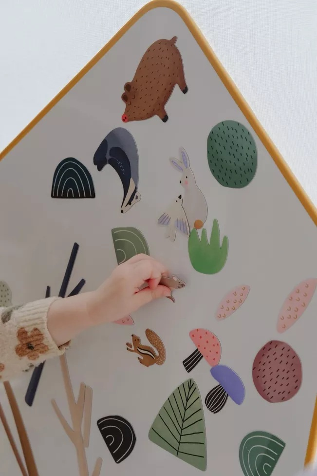 Táto kreatívna magnetická hra prenesie deti do kúzelného sveta lesa. Obsahuje 39 magnetov s lesnými zvieratkami, stromami a rastlinkami, vďaka ktorým si môžu vytvárať vlastné príbehy a scény s medveďom, líškou, vtáčikom či veveričkou.