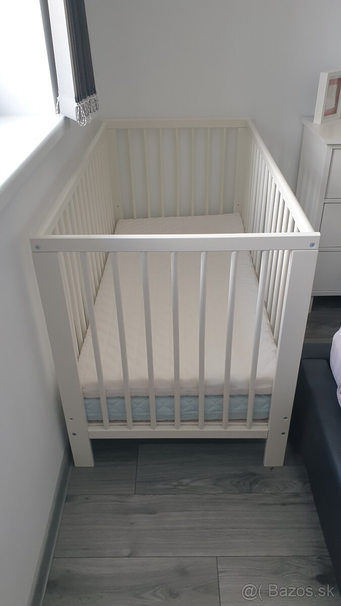 Detská postieľka SOFIA (+ matrac zdarma) - [12.3. 2026]Predám detskú postieľku Sofia. Po 1 dieťati. Bez poškodenia. Rozmery: 65 cm x 124 cm. Nastaviteľné 3 výšky roštu. S tromi odnímateľnými tyčkami na bočnej strane. Pôvodná cena 170,00 €. Cena: 99,00 €