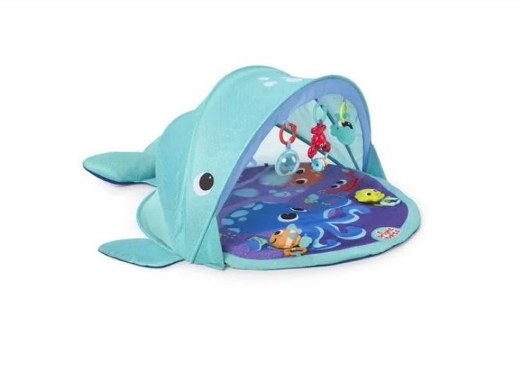 Nepremokavá deka na hranie s UPF 50 filtrom Bright Starts Explore & Go veľryba, s pôvodný obalom a prenosnou taškou.