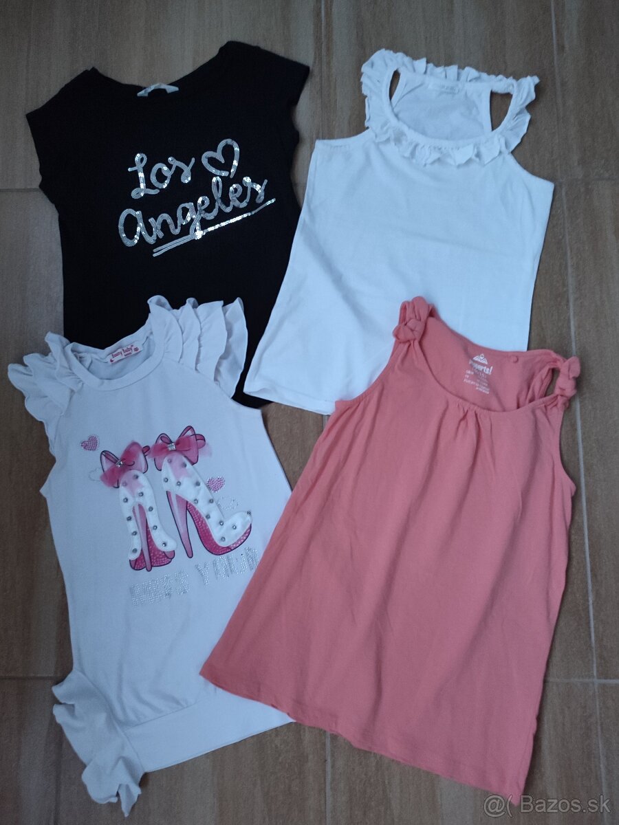 Tričko bez rukávov - 4ks, v. 122 - [10.3. 2026]Predám 4 kusov tričiek bez rukávov. Nosené, ale v dobrom stave. Bez poškodení. Vidno trochu známky prania. Veľkosť: 122. Značky: Pepco, FaF, CaA. Cena spolu: 8 € + pošta