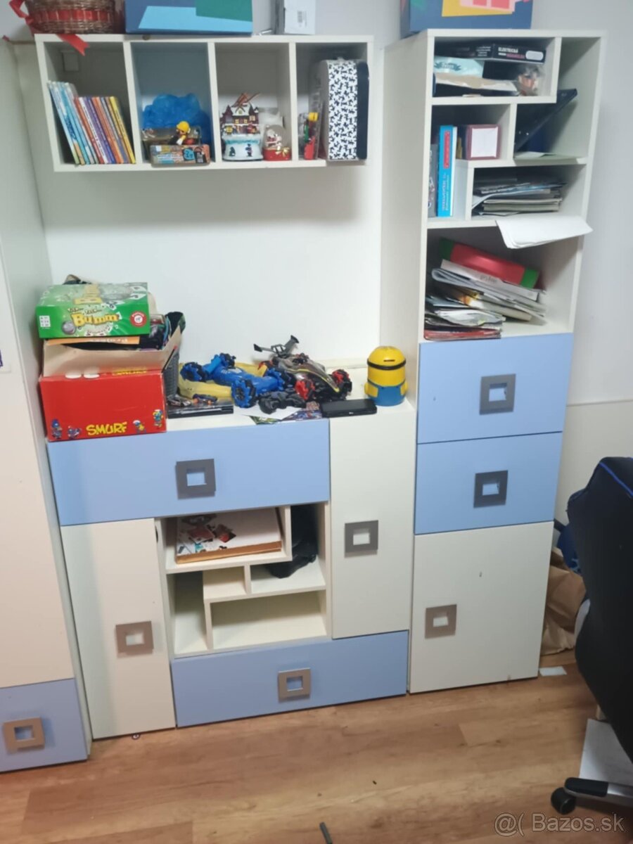 Detska izba - [12.3. 2026]Predam detsku izbu v zachovalom stave. Vsetko ako je na foto - skrine, pisaci stol + stolicka, postel s uloznym priestorom+zabrana, stolika+stolicky. Velka rohova skrina je demontovana pre skladnost a prepravu. Cena komplet 300eur.