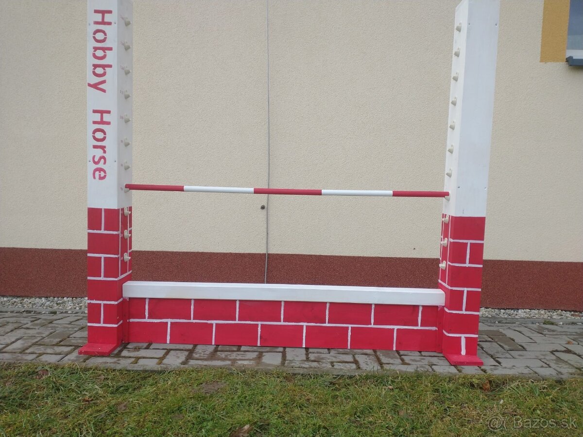 Překážka (múr) je vysoká 30cm. Nastavitelná výška skoku u překážky je po 10cm a začíná od výšky 40cm do 140cm. Délka přeskoku/tyče je 140cm.
