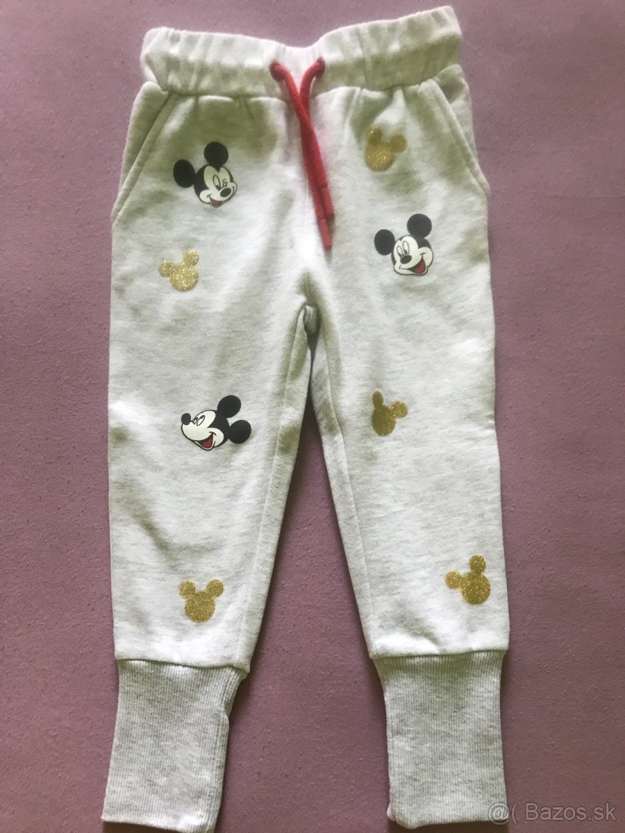 Predam teplejsie dievcenske teplaky s motivom Mickey zn.Reserved, farba seda melirova, vel.98. Spodny patent je vyssi, pekny strih, oblecene 1-2x, uplne ako nove. Z vnutra prijemny hrejivy material (vid foto).