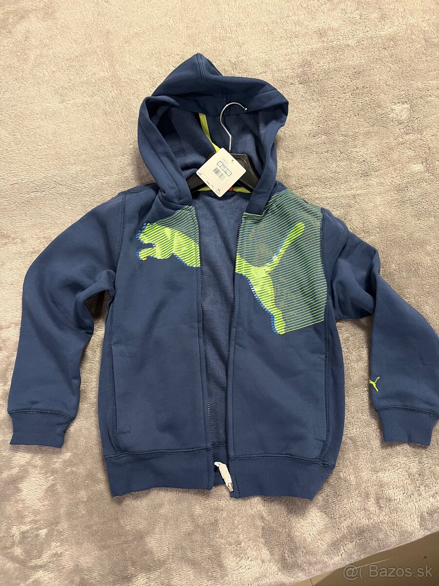 Predám chlapčenskú mikinu zn Puma ešte s visackami. Z vnútra hrejivý materiál vid foto. Velkost a ost rozmery sú na fotkách.