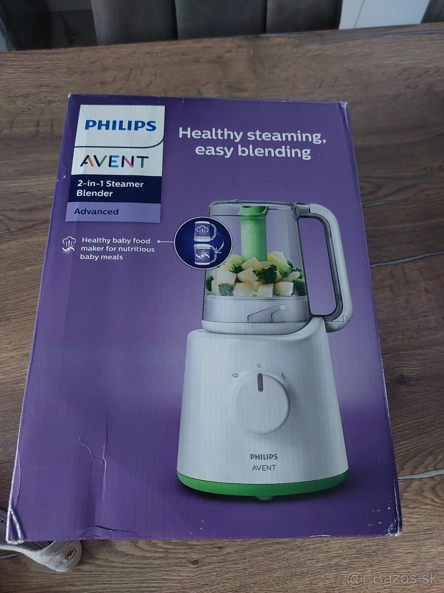 Parný mixér Philips Avent 2v1 - [15.2. 2026]Parný mixér na príkrmy, vyčistený, v super stave, iba vrchnák je trochu zafarbený od jedla, všetko funkčné, v originál krabici aj s návodom
