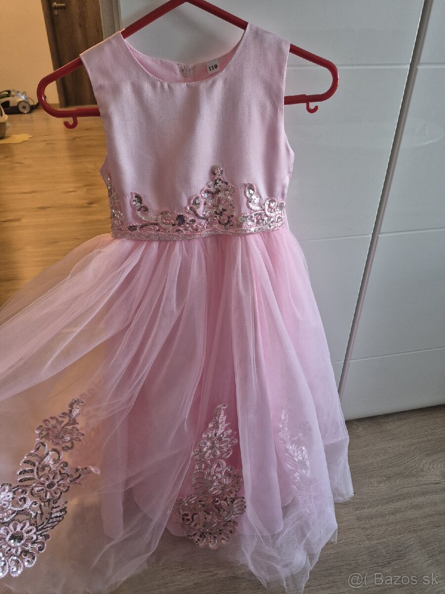 Krásne raz oblečené saty veľkostne píšu 110 ale aj menšie. Zozadu veľká mašļa a zips. Cena bez prepravy- najlepsie osobne Trenčín
