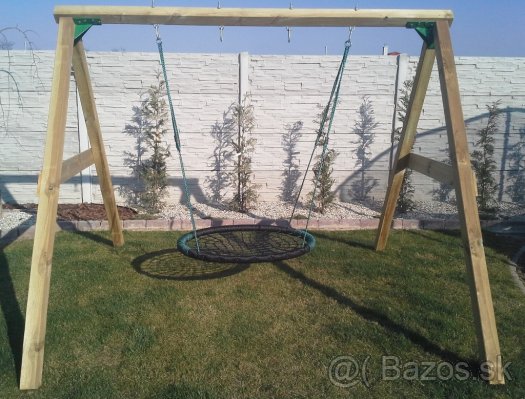 Rezivo severská borovica tlakovo naimpregnovaná: 4ks hranol 9x9x240cm, 1ks hranol 9x9x240cm, 2ks doska 1,8x14cm.Hojdacie hniezdo nie je v cene hojdacej zostavy