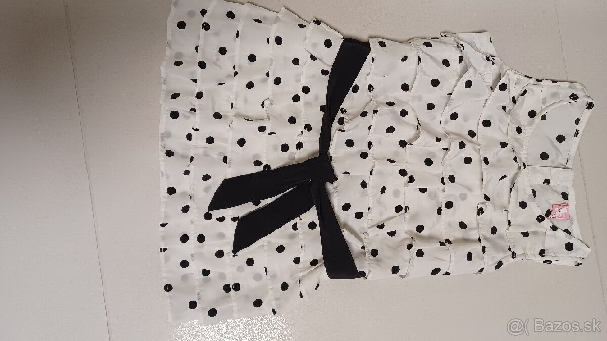 Biely top s čiernymi bodkami a opaskom,lesklé čierne legíny,atracitova volanova suknicka
