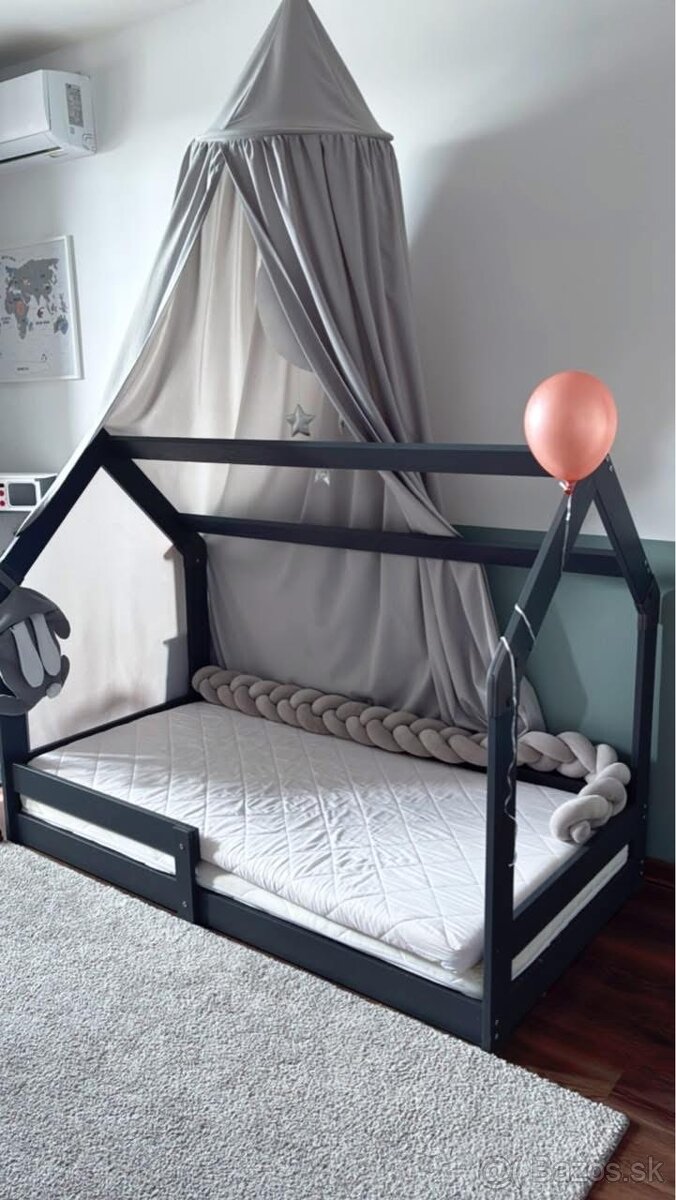 Posteľ domček Montessori - [28.2. 2026]Predám detskú Montessori posteľ v tvare domčeka.Aj s baldachynom, roštom a matracom.Iba osobný odber Jacovce. Rozmer 160×90 cm.