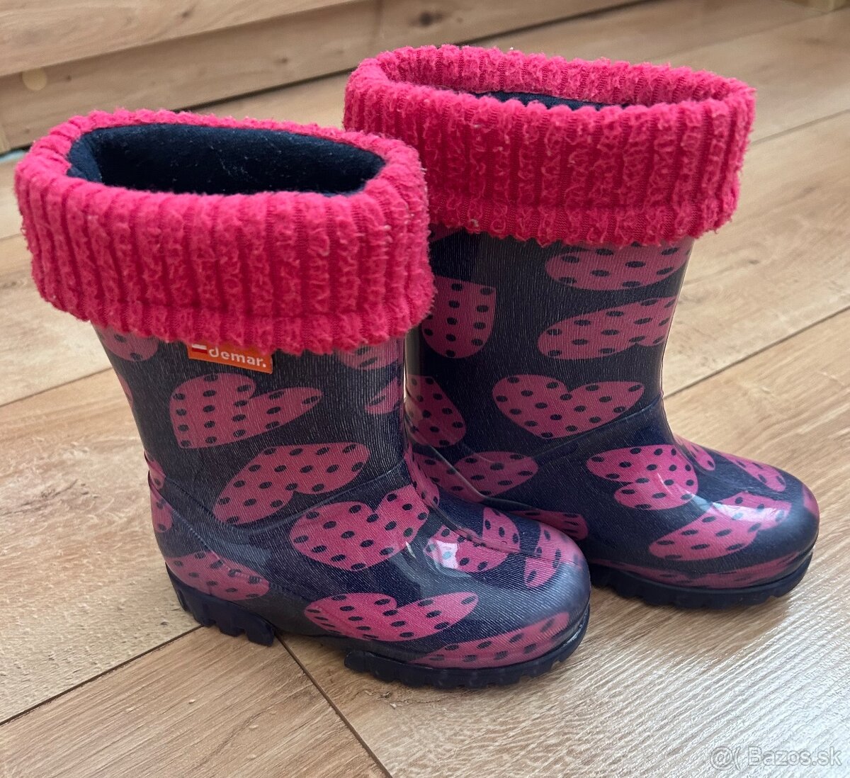 Dievčenské gumáky Demar - [3.3. 2026]Predám dievčenské gumáky Demar veľkosti 22/23 s vyberateľnou vložkou v dobrom stave za 7€ + pošta