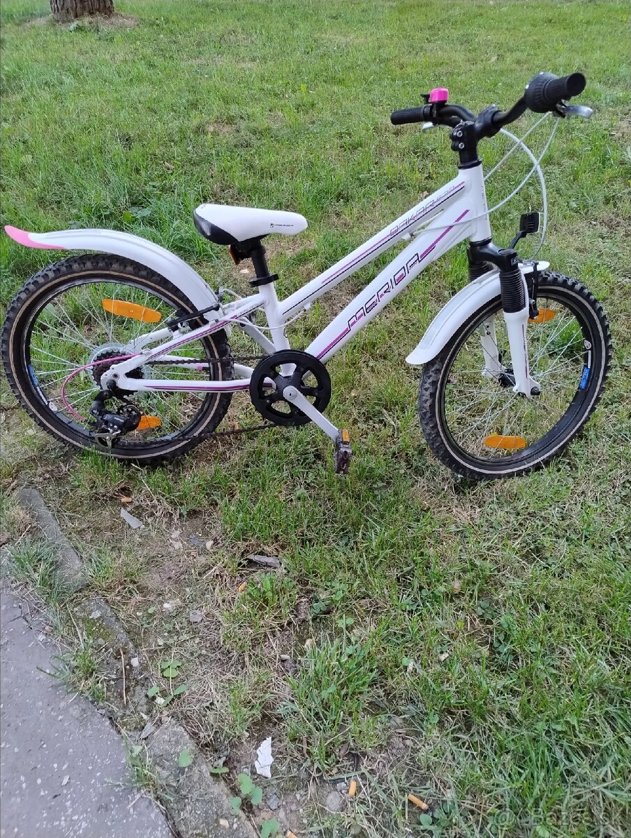 Predám dievčenský bicykel Merida Dakar 620, hliníkový rám, kolesá veľkosť 20, odpružena predná vidlica, rýchlosti 1x7, odrázky, zvonček, blatníky, stojan,v peknom stave,pre výšku postavy 100-130cm