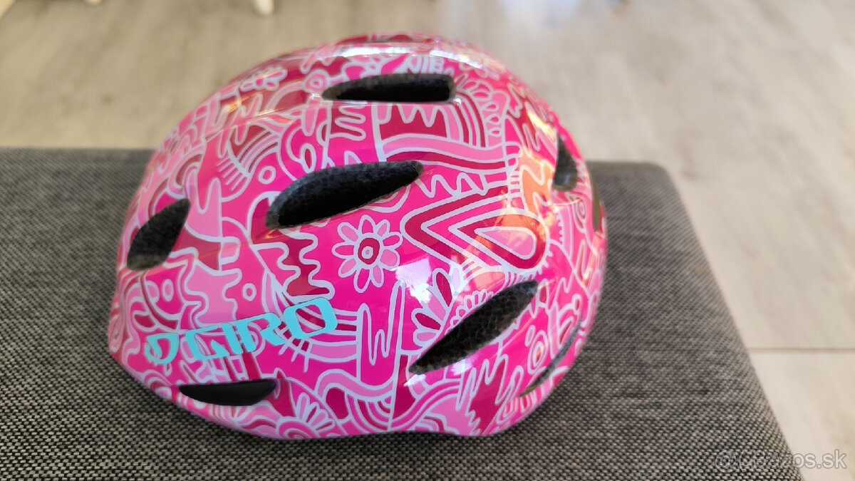 Predám túto detskú helmu zn. Giro SCAMP. Veľkosť je XS, rozmer na 45-49 cm. Je vo výbornom stave, bez poškodenia, bez škrabancov, používaná minimálne, odložená v skrini.