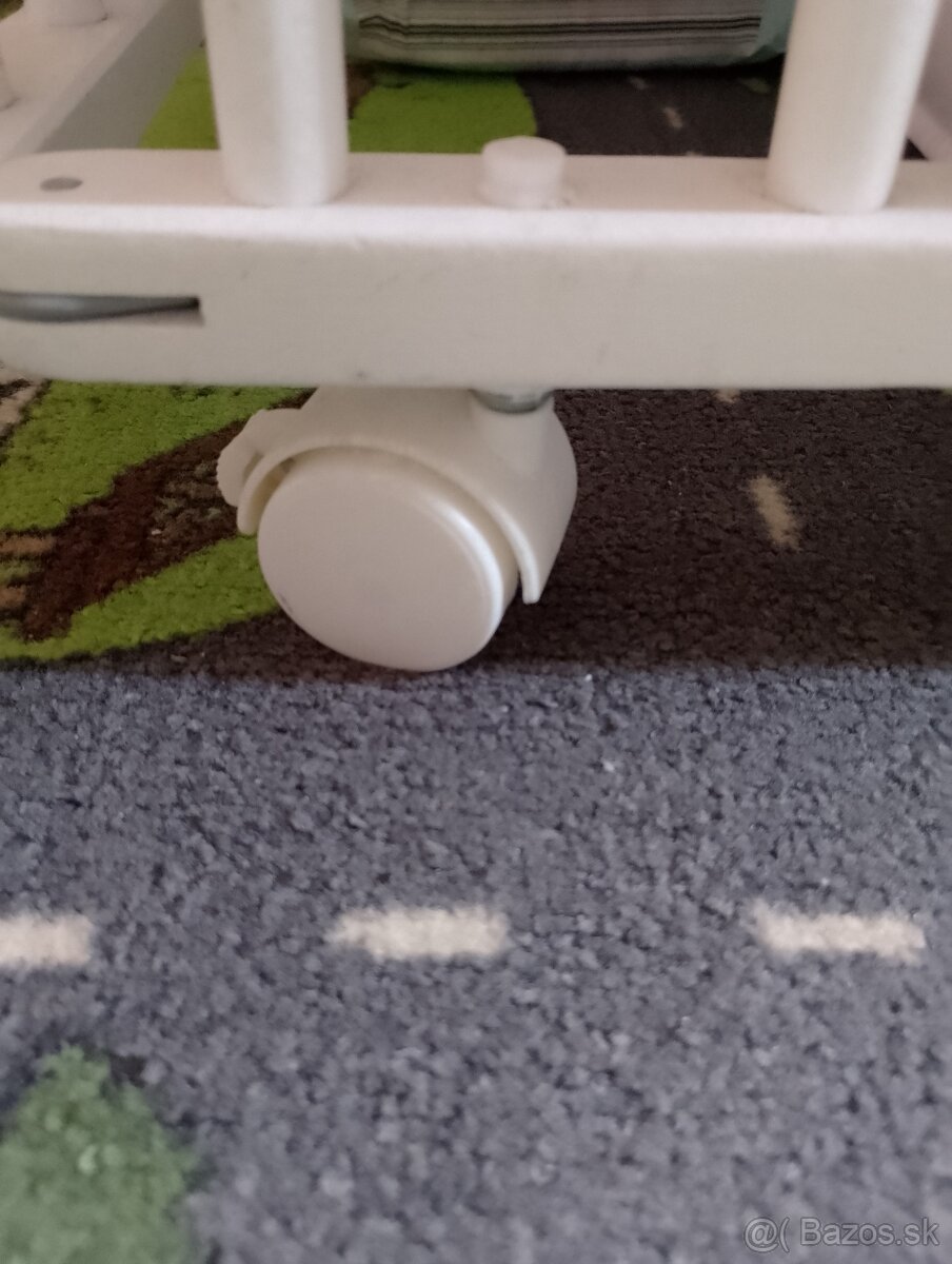Predám detskú postieľku v sto percentnom stave. Jednoduché zloženie. Rozmery 124 na 65 aj s matracom. Postieľka má otočné kolieska, dá sa s ňou ľahko manévrovať. Sú tam 4 rôzne úrovne nastavenia výšky postieľky.