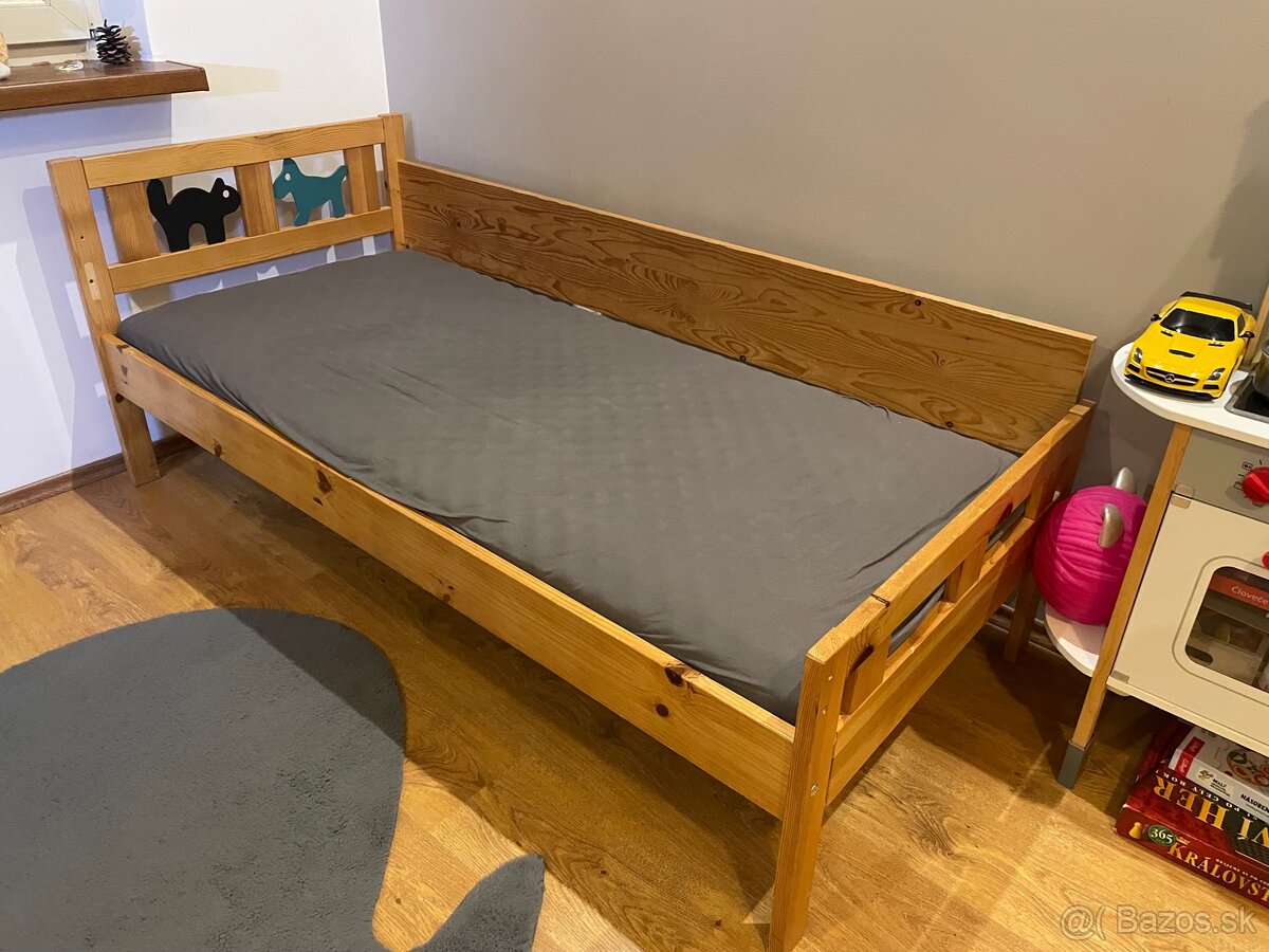 Drevena detska postel obojstranna, rozmer 165x78, dreveny rost a matrac