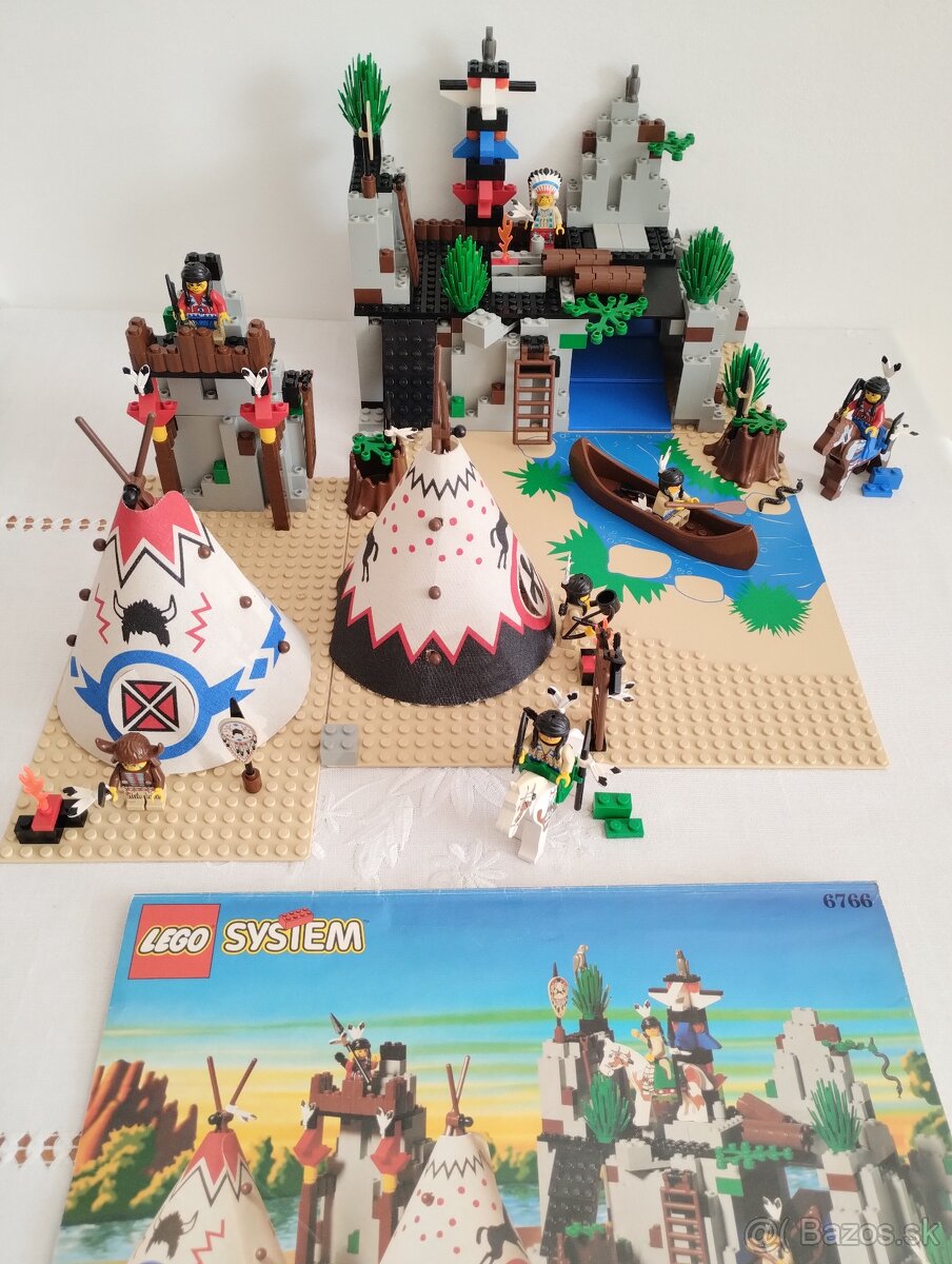 kompletné LEGO Western 6766 Rapid River Village z kolekcie Indians z roku 1997, s originálnym návodom, kocky lesklé bez poškodenia. stavebnica bez zápachu, z nefajčiarskej domácnosti bez domácich miláčikov
