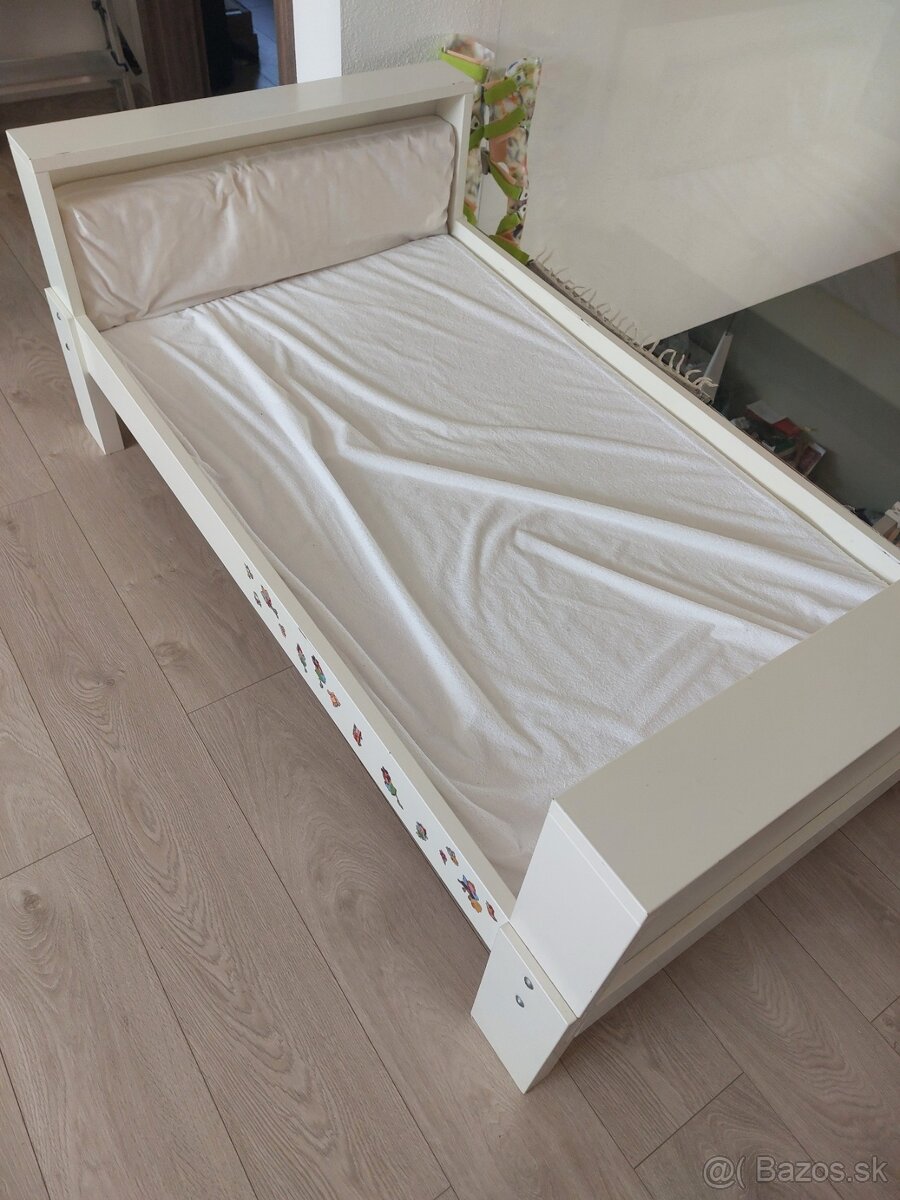 Predám detskú posteľ - 130x80 cm. Dá sa rozložiť na rozmer cca 190x80 cm. Ponúkam aj s matracom - ako nový.
