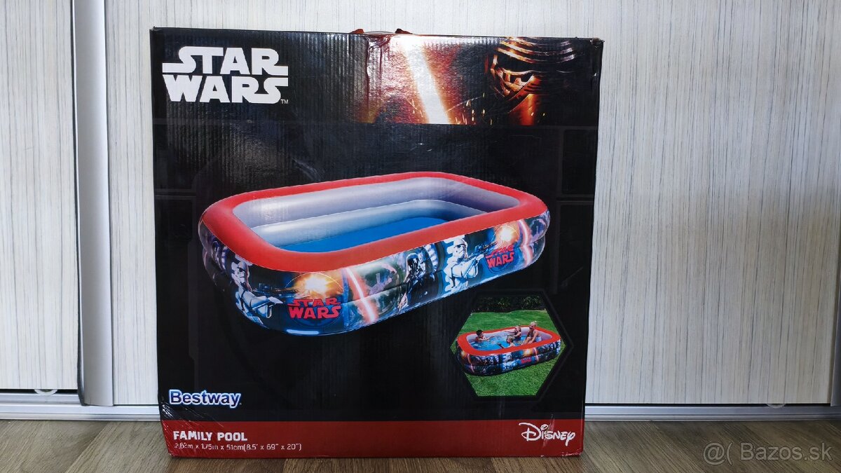 Dobrý deň predávam neotvorený star wars bazén s rozmermi 2,62 m x 1,75 m x 51 cm. No vonkajší vizuálny stav nie je na tom najlepšie,ale keďže je neotvorený tak bazén bude nepoškodený. Na cene sa môžme dohodnúť len ponúknite. Môžem poslať aj packetou prípadne