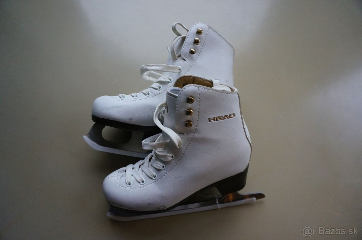 Predáme juniorské ľadové korčule zn. Head, model Donna, veľkosť 34, pre dievča. Topánka korčule na šnurovanie. Hlavne v priehlavkovej časti topánky majú korčule kozmetické vady. Spodok korčulí bez poškodení.