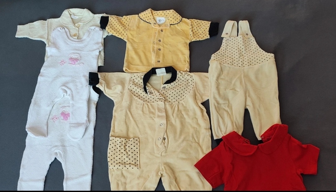 Balík retro oblečenia pre bábätko-dievčatko hľadá svojho majiteľa, ďalšieho nadšenca retro oblečenia. U nás nebol využitý, keďže sme nemali dievčatko. Vecičky sú v krásnom stave bez chýb. Pridávam aj retro čiapočku a 6kusov nových, nepoužívaných pod radníkov.