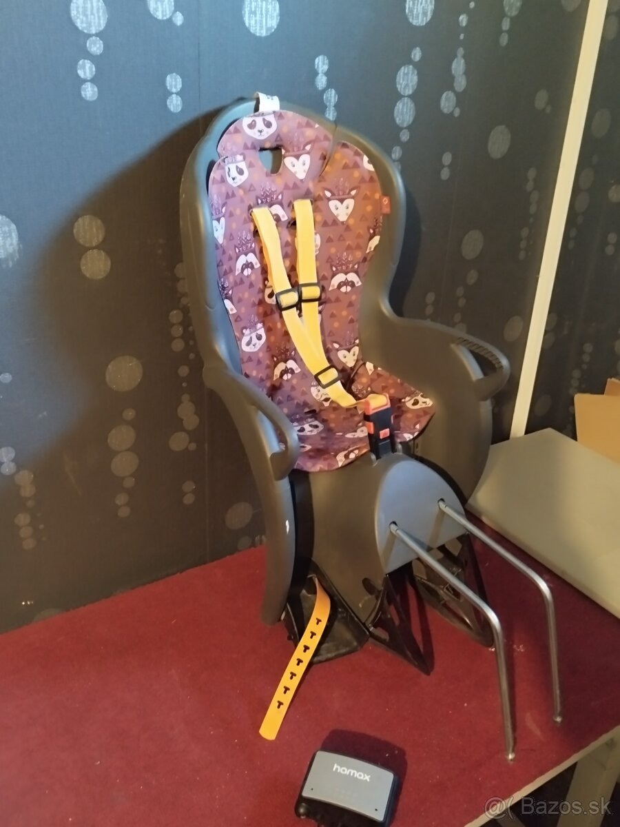 Detská cyklosedačka HAMAX KISS. Používaná (po 1 dieťati). Nosnosť Max 22 kg. Plne funkčná. Malé estetické nedostatky spôsobené používaním.