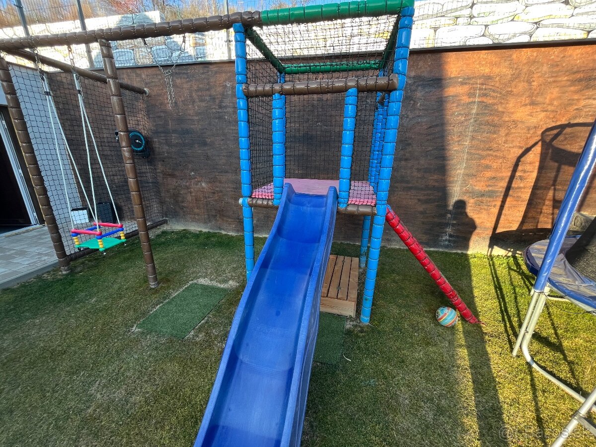 Predám záhradnú detskú hojdacku z domčekom spustackou a pieskoviskom je to na dve hojdacky kde sa môže hojdať aj dospela osoba