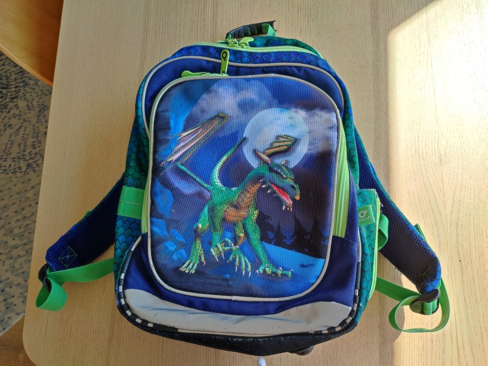 taška nosená synom 1.-4. ročník. kvalitná, dobre polstrovaná, má nezničiteľné zipsy. zachovalá, čistá, opratá. chybičky: dierka na bočnej sieťke na flašu, stačí zašiť, pár prasklín na reflexnom pásiku a prasknutá plastová krytka na rukoväti tašky. stále je pekná.
