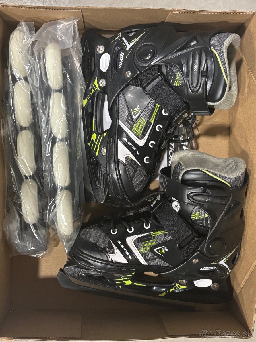 Na korčuliach je mozne vymenit čepeľ na ľad za kolieska. Velmi pohodlne.