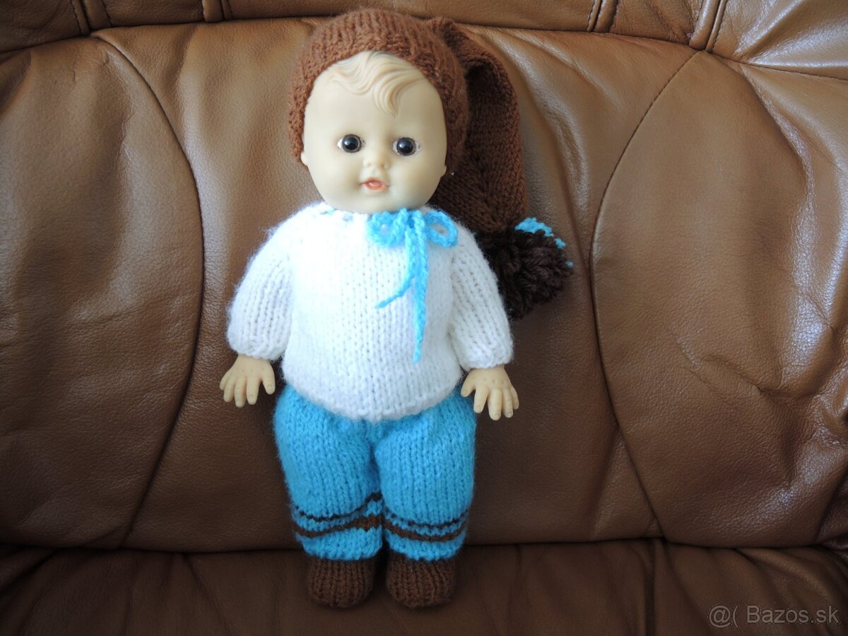 Predám prekrásnu retro gumenú bábiku zo svojej zbierky s hnedými očkami. Oblečenie má uštrikované nové priamo na ňu. Výška 26 cm.