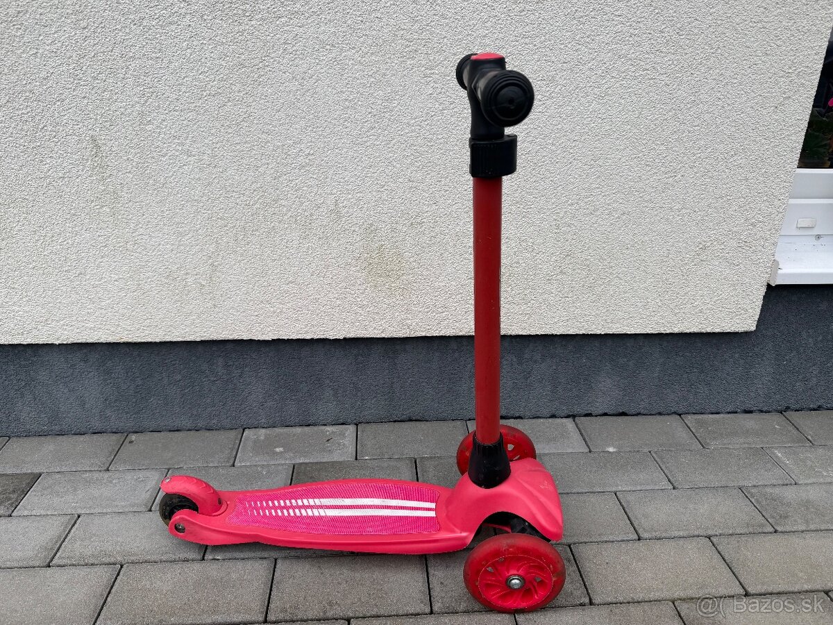 Predám detskú trojkolesovú kolobežku Ferrari. Červená , používaná, zachovalá. Kolieska pri jazde svietia, nastaviteľná výška riaditok kolobežky.