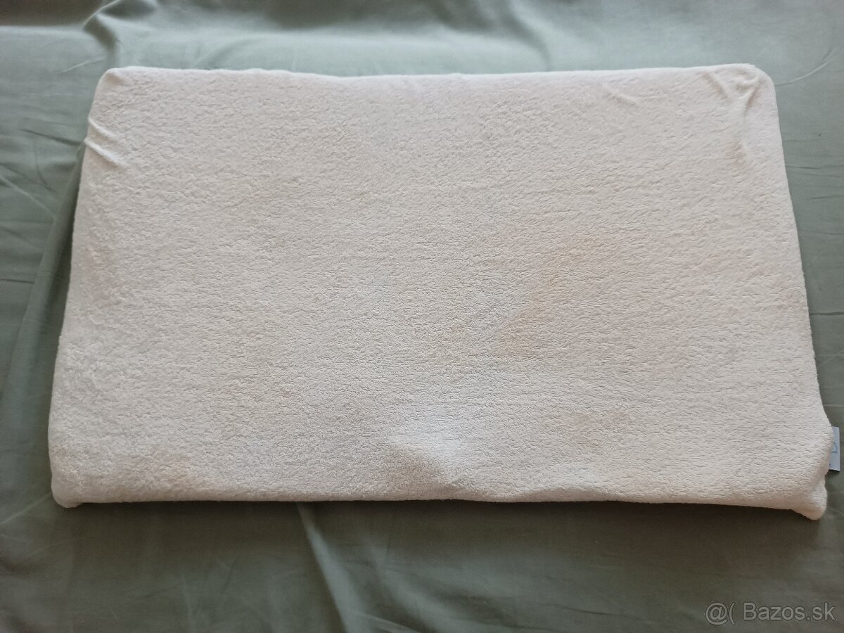 Klinový vankúš Babymatex, vhodný do postieľky pre bábätko s refluxom. Šírka 60cm, hĺbka 36cm, klin 6cm. Biely froté poťah je odnímateľny, dá sa prať (je mierne zažltnutý z bežného používania).
