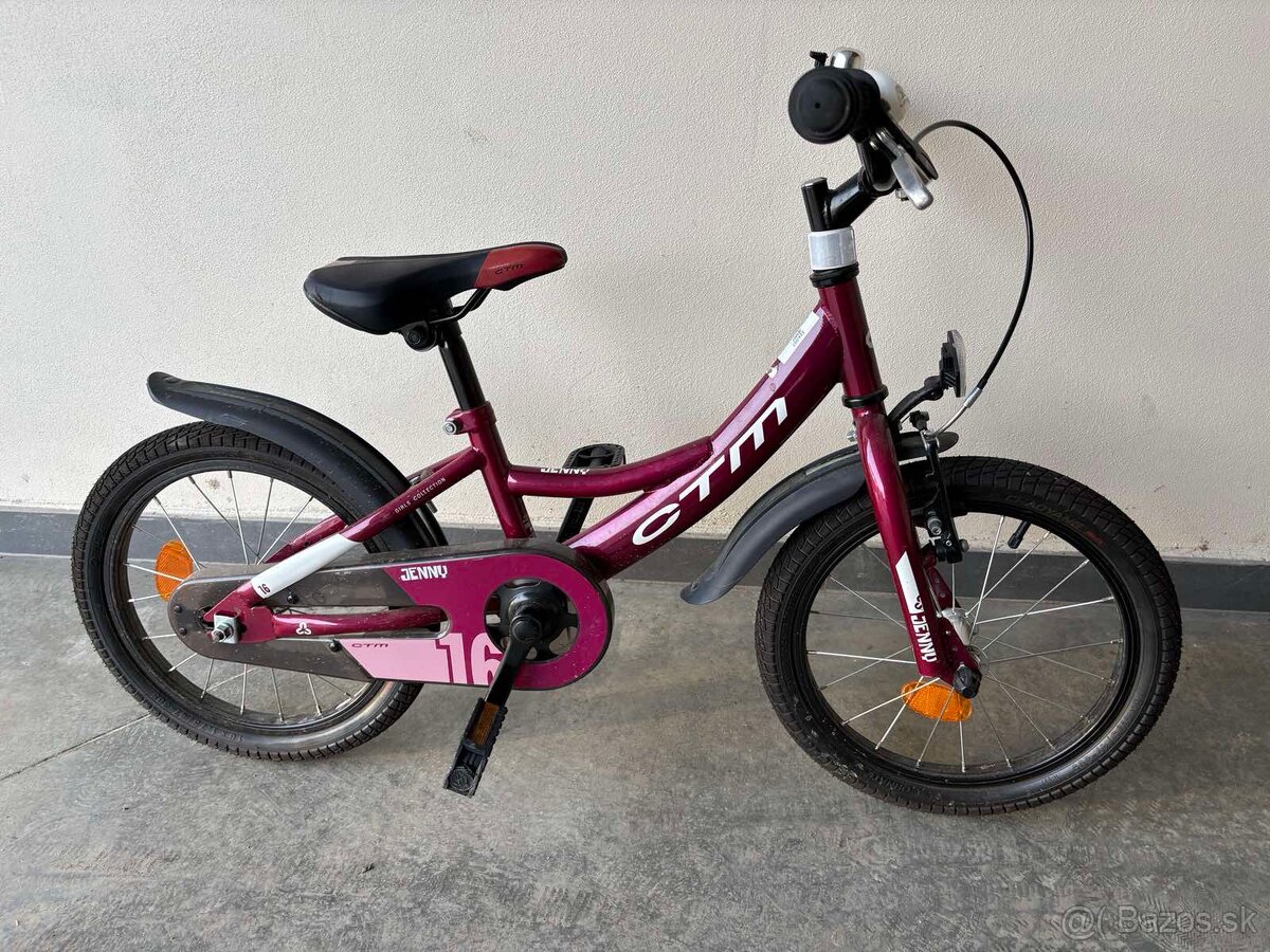 Na predaj detsky bicykel CTM JENNY 16" 2024 v tmavoružovej perleťovej farbe je ideálny pre deti s výškou 105–120 cm. Je vybavený 16-palcovými kolesami, oceľovým rámom veľkosti 8" a spoľahlivými V-brzdami Alhonga. Bicykel má jednoduchý prevodový systém s jedným rýchlostným stupňom, čo uľahčuje ovládanie pre začínajúcich cyklistov. Súčasťou výbavy sú aj pomocné kolieska pre zvýšenie stability počas učenia.